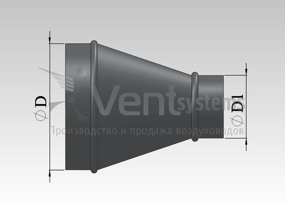 Круглый стальной оцинкованный переход диаметром до 1250 мм (длина перехода подбирается автоматически, исходя из рекомендованных параметров)