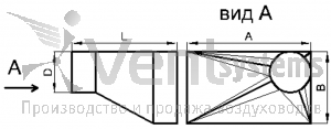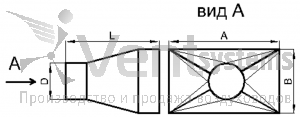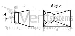 Прямоугольный стальной оцинкованный переход с фланцами (длина перехода подбирается автоматически, исходя из рекомендованных параметров)
